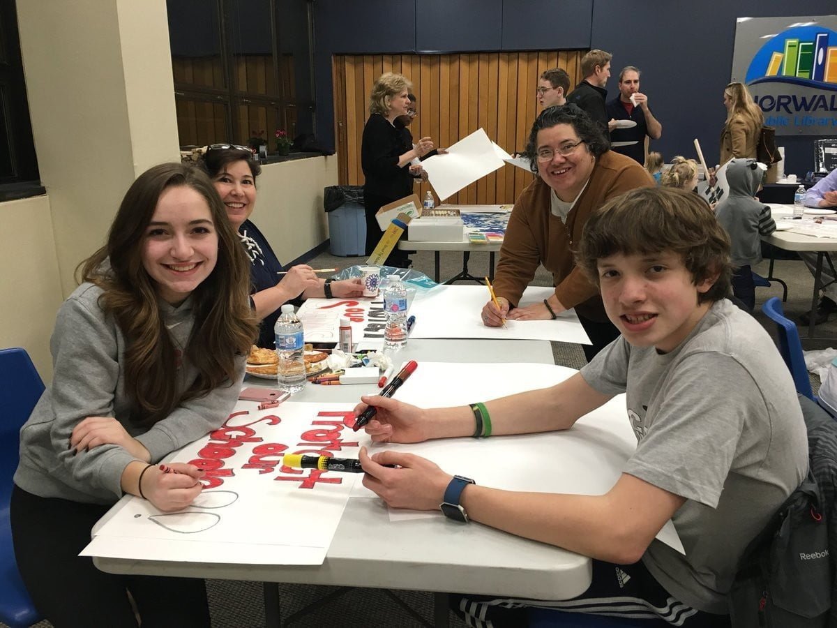 NORWALK.- Unos 100 niños, padres, clérigos y otros adultos interesados se reunieron en la Biblioteca Pública de esta ciudad, el miércoles por la noche, para hacer carteles y portarlos en una marcha para pedir reformas al control de armas.