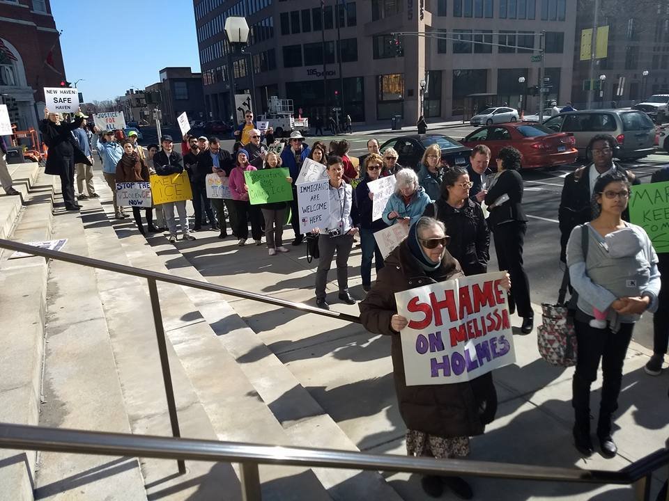 Los manifestantes señalaron que los inmigrantes han sido arrestados recientemente afuera de los juzgados en Stamford, Bridgeport y New Haven, así como en el York Correctional Institute, la única prisión de mujeres en Connecticut, por parte de los agentes del Immigration and Customs Enforcement (ICE).