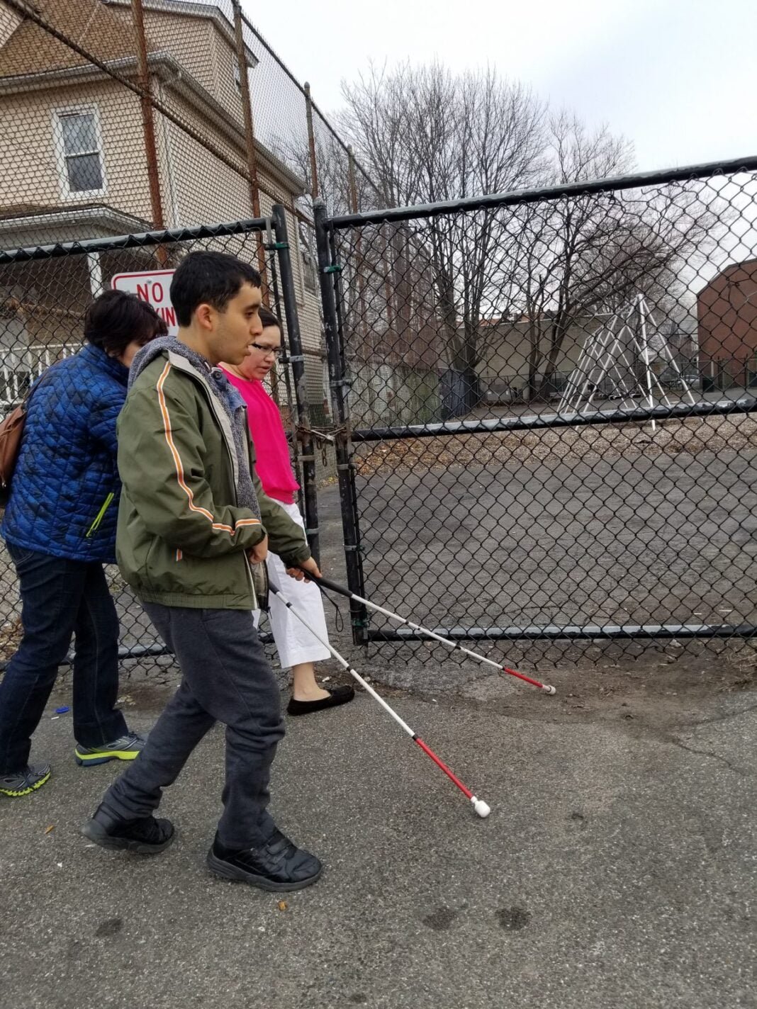 Por su parte, Ana Luz recibió la visita de Cecilia y Renzo Ríos Niño para ayudarla a caminar con su bastón en la calle. Ambos apoyan la iniciativa de The Blind Voices para ofrecer ayuda a los hispanos con alguna discapacidad.