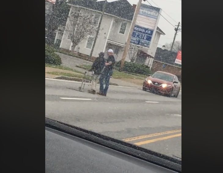 En el clip se observa como Justin Jackson se baja de su camioneta y detiene tráfico en Griffin, Georgia, para ayudar al hombre a cruzar la carretera. El conductor del camión fue identificado más tarde como Justin Jackson.