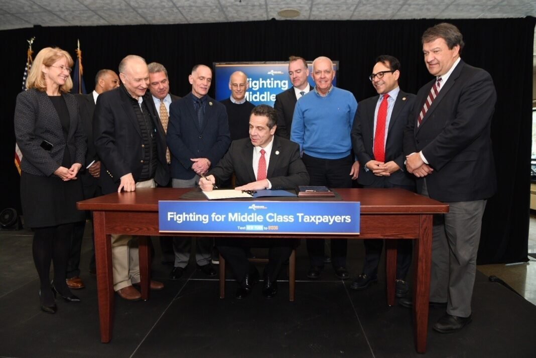 YONKERS.- El gobernador Andrew Cuomo llegó a la sede de Teamsters Local 456 en el Federal Tax Day para firmar una ley que, según él, tiene la intención de eludir la nueva ley de impuestos federales.