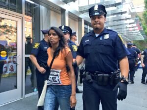 Más de 30 personas fueron arrestadas por la policía de Hartford frente al edificio federal mientras participaban en la protesta llamada Abolish ICE.