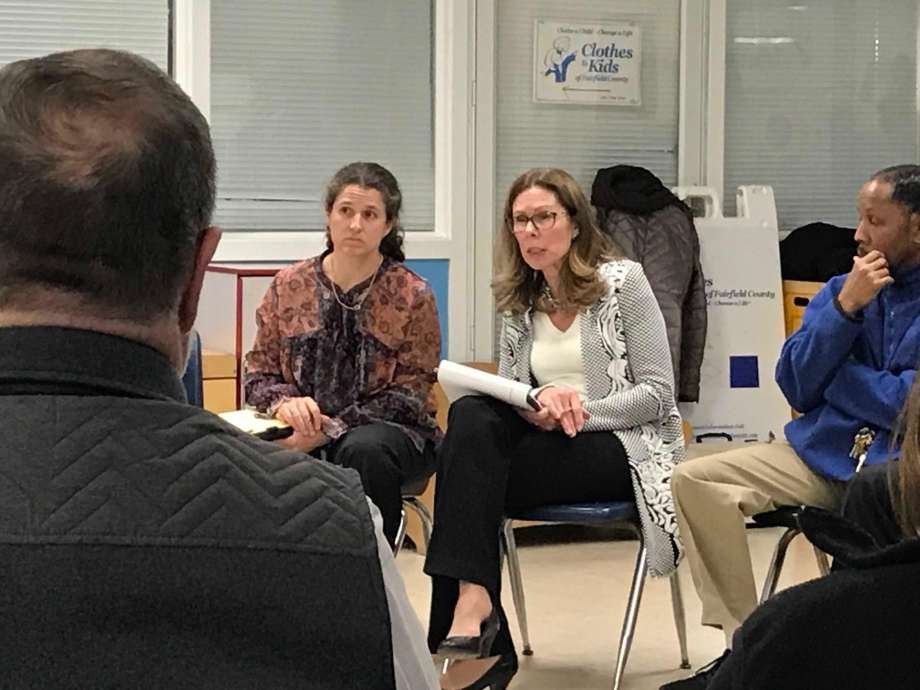 Una segunda reunión con los residentes de North Stamford que se llevó a cabo en la sucursal de Harry Bennett de la Biblioteca Ferguson, que atrajo a unos 45 residentes.
