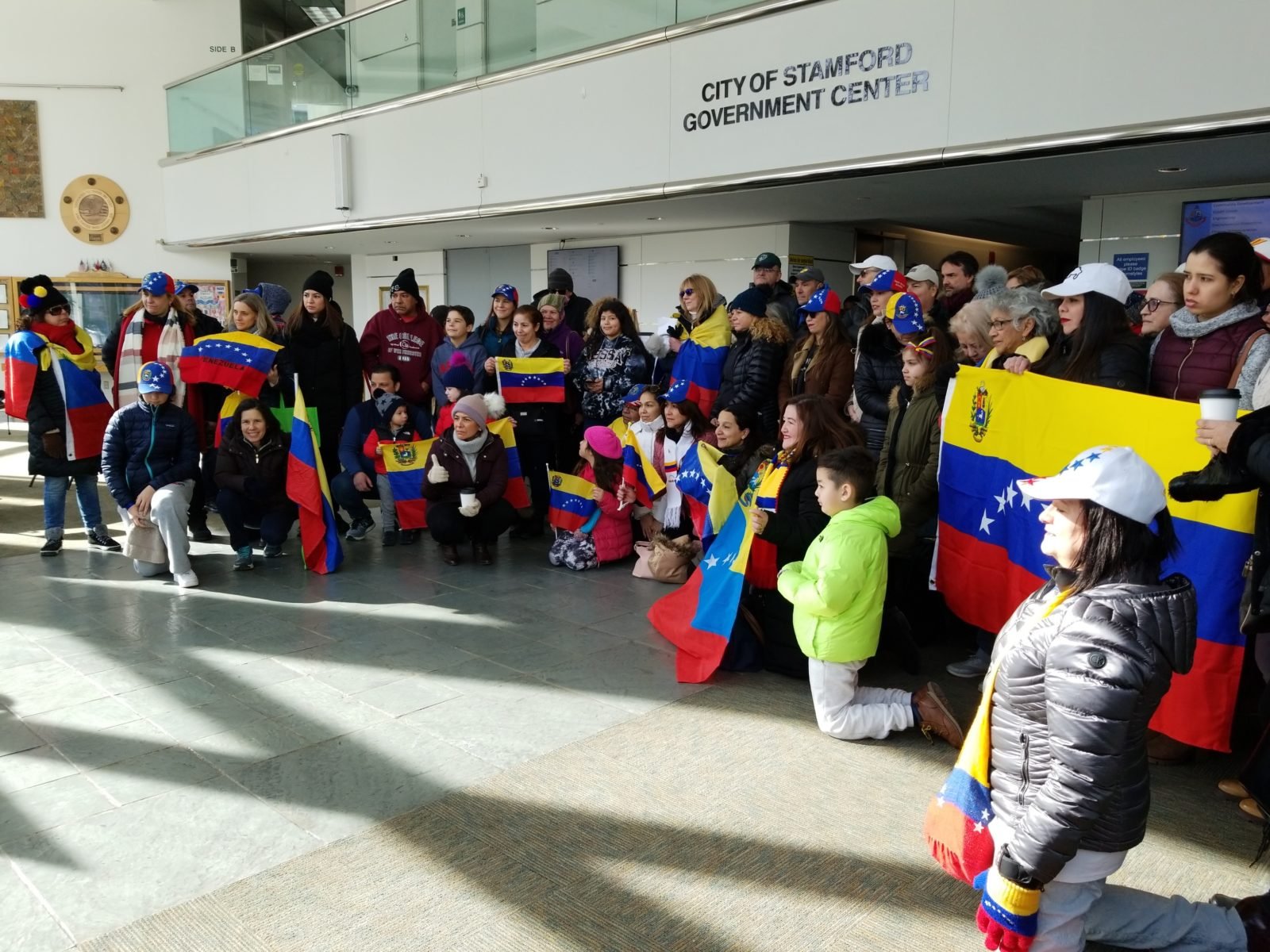 STAMFORD.- Con el fin de protestar contra el régimen de Nicolás Maduro y apoyar al presidente interino Juan Guaidó, la comunidad venezolana se unió, el sábado pasado, para llevar a cabo una manifestación en el Centro de Gobierno de esta ciudad.