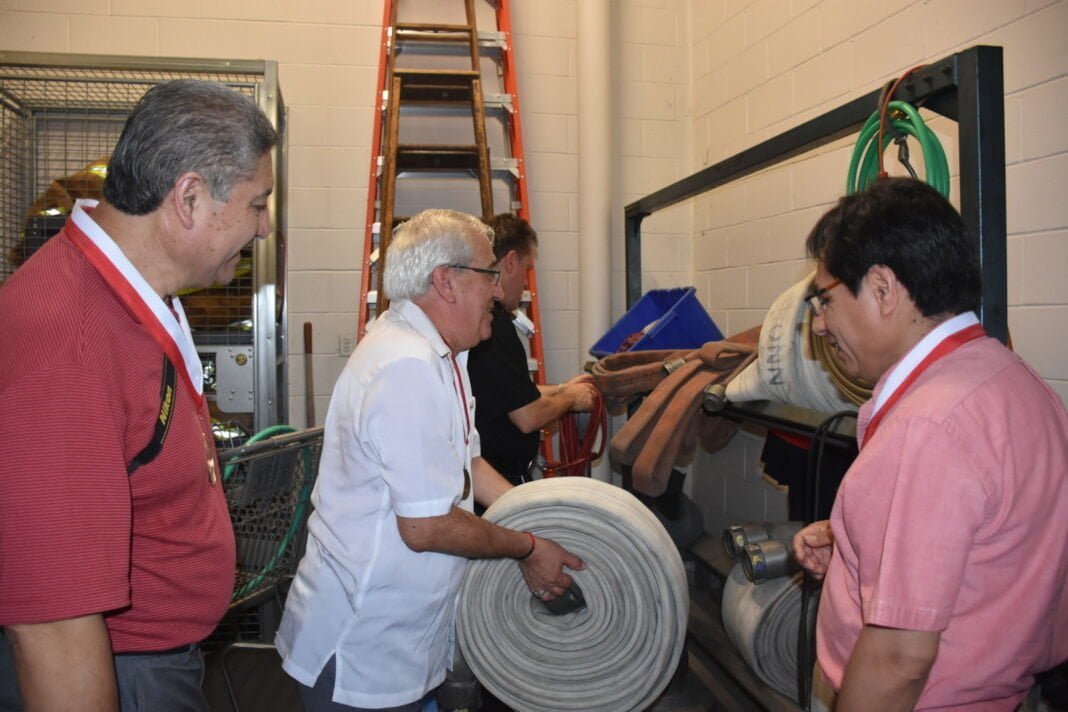Miembros del PACC ultiman detalles con representantes del Departamento de Bomberos de Stamford sobre las donaciones de los equipos de socorro que serán entregadas a los bomberos de Perú. (Foto: EL SOL News).