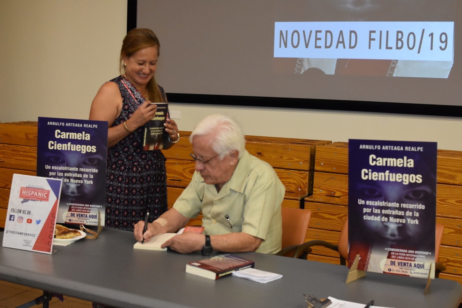 STAMFORD.- En un evento especial y con la asistencia de representantes de varias organizaciones latinas y público en general, se llevó a cabo el lanzamiento de la novela “Carmela Cienfuegos” en el auditorio principal de la biblioteca “Ferguson” de esta ciudad.