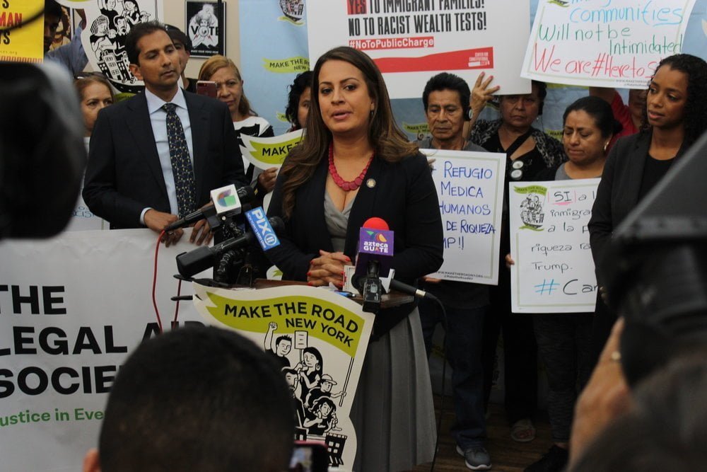La asambleísta Catalina Cruz, quien representa a las áreas de Corona, Elmhurst y Jackson Heights, habló en contra de la regla de la carga pública y dijo que tenía el honor de representar al distrito con el mayor número de inmigrantes e inmigrantes indocumentados en el Estado.