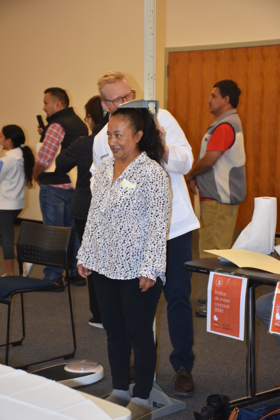 Una señora se somete a la prueba de peso y estatura. (Foto: EL SOL News).