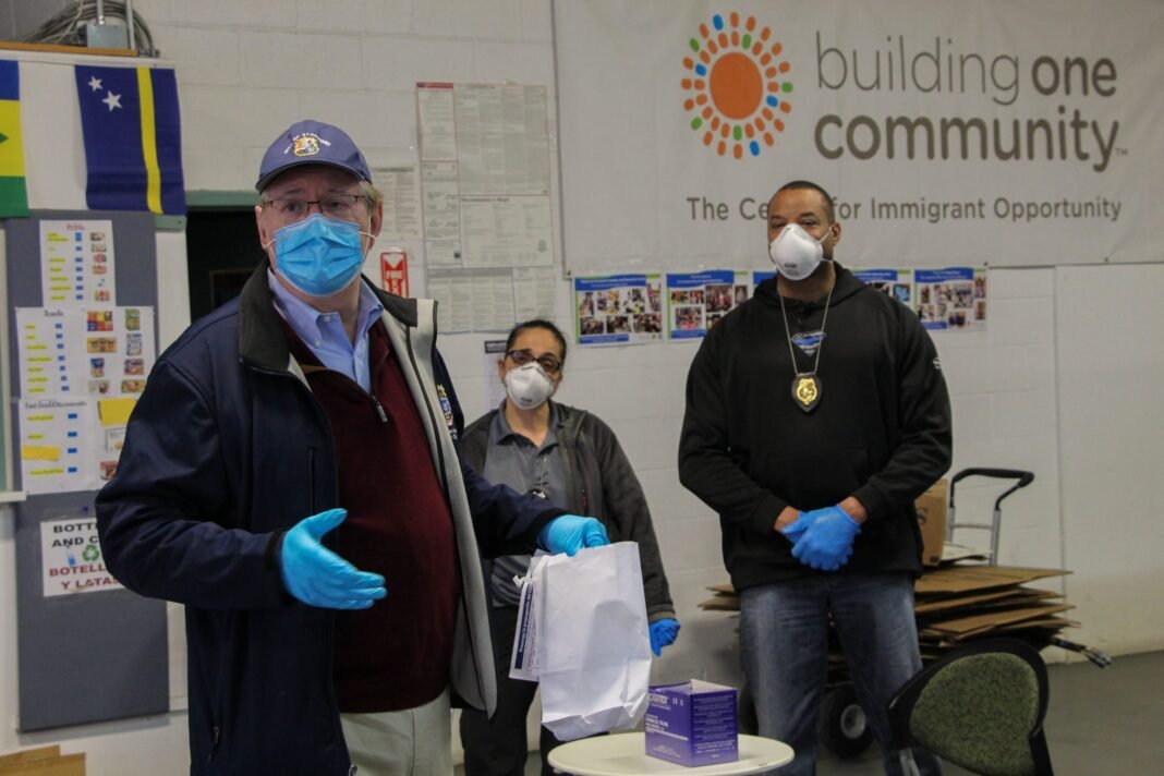 El Departamento de Bomberos de Stamford y el Stamford Fire Department and Community Emergency Response Team entregaron paquetes de máscaras e información.