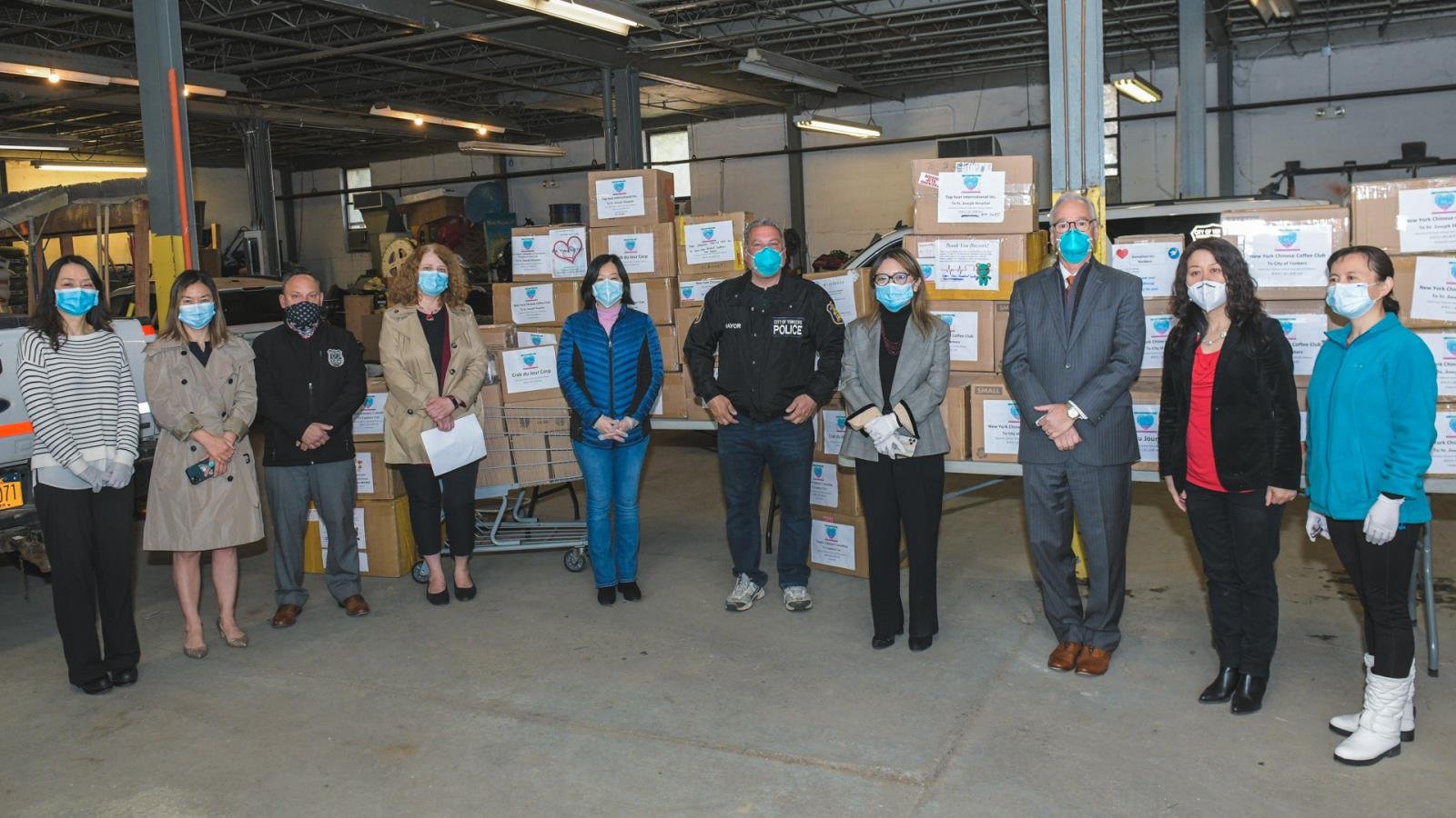 YONKERS.- El alcalde, Mike Spano se unió al presidente del St. Joseph’s Medical Center, Michael Spicer, y al presidente del Richmond Children’s Center, Paca Lipovac, para aceptar una donación de equipo de protección personal (EPP) proporcionado por la American Chinese United Care (ACUC) Alliance y sus donantes miembros.