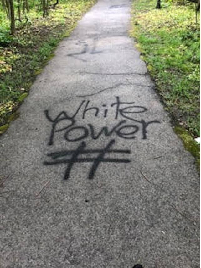 El graffiti, que incluye una esvástica (símbolo nazi) y un lenguaje racista dirigido a los afroamericanos y mexicoamericanos, fue encontrado en la parte posterior de un refugio en Scout Field y en un camino al norte del campo de juego.
