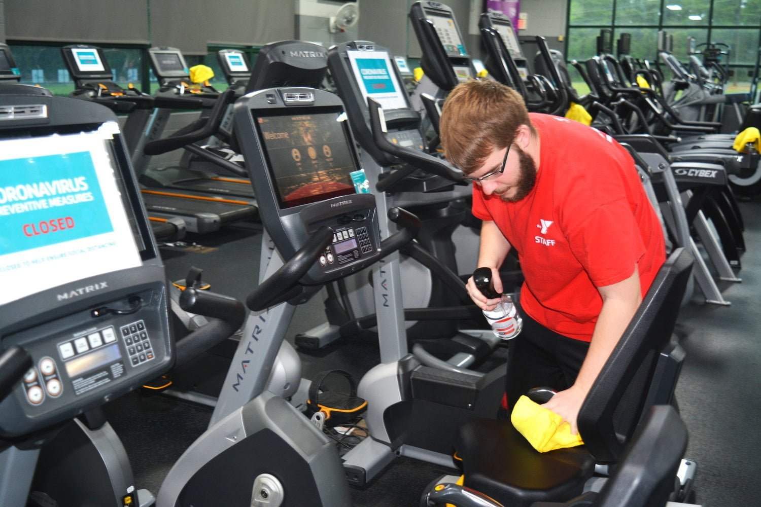 Las restricciones en los gimnasios incluyen deshabilitar cada uno o cada tres casilleros para promover el distanciamiento social, requerir que los usuarios del gimnasio limpien el equipo después de usarlo, y ajustar el equipo para que los atletas estén a una distancia de 6 a 12 pies entre sí.