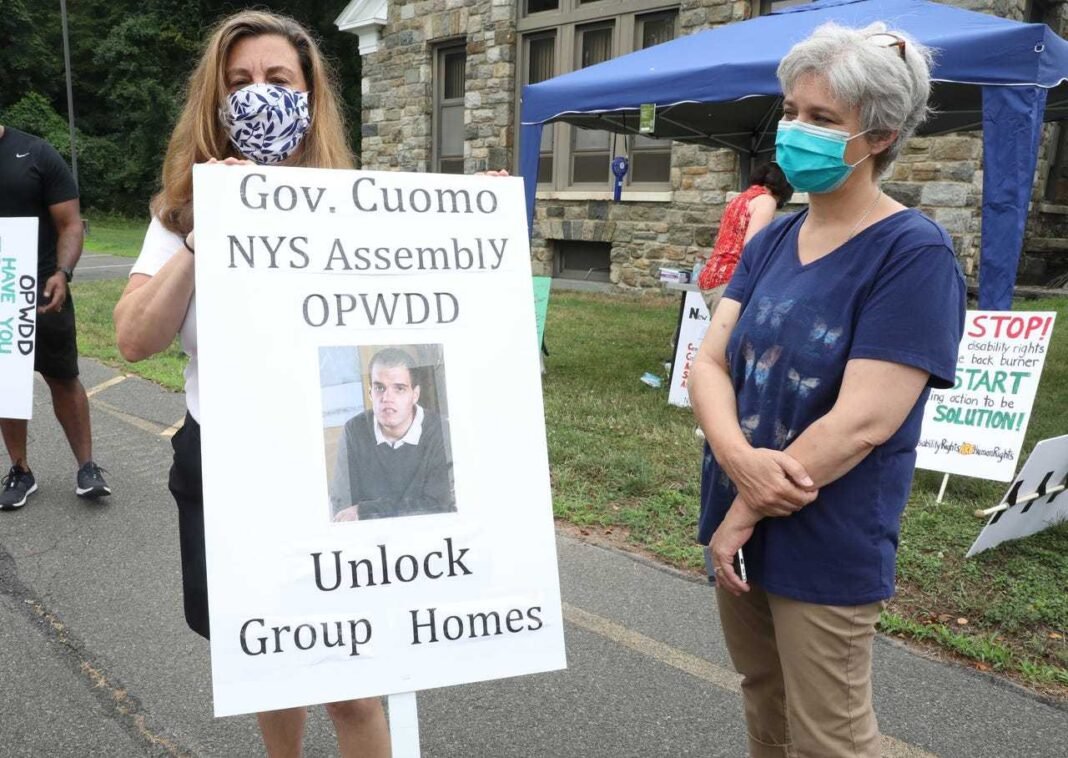 Los manifestantes sostenían carteles que decían “OPWDD ¿Te has olvidado de nuestros seres queridos?” y “Los salones de manicura están abiertos, desbloquee también los hogares grupales” mientras buscaban atención para la difícil situación de las personas con discapacidades intelectuales y del desarrollo que permanecen restringidas a sus hogares grupales.