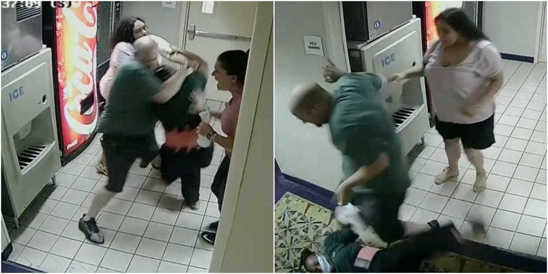 El video de la agresión está disponible en Youtube en https://www.youtube.com/watch?v=zXR6HOdczKA o buscando el título “Suspects identified in beating of hotel Clerk”.