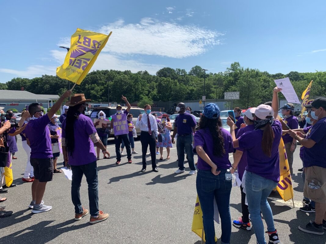 Los oradores, entre ellos, el Senador federal Richard Blumenthal y otros funcionarios, exigieron que el Senado apruebe la HEROES, que pasó la Cámara de Representantes federal hace varios meses, para proporcionar a los trabajadores esenciales equipo de protección personal, pago de riesgos y beneficios de desempleo extendidos.