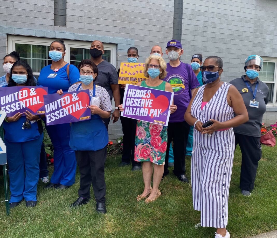 Los miembros del sindicato de atención médica y los legisladores estatales manifestaron que rinden homenaje a los trabajadores que arriesgaron su salud para ayudar en la pandemia de coronavirus en un momento en que la gerencia del Enclave at Rye propone reducir más del 40 por ciento de los miembros del sindicato.