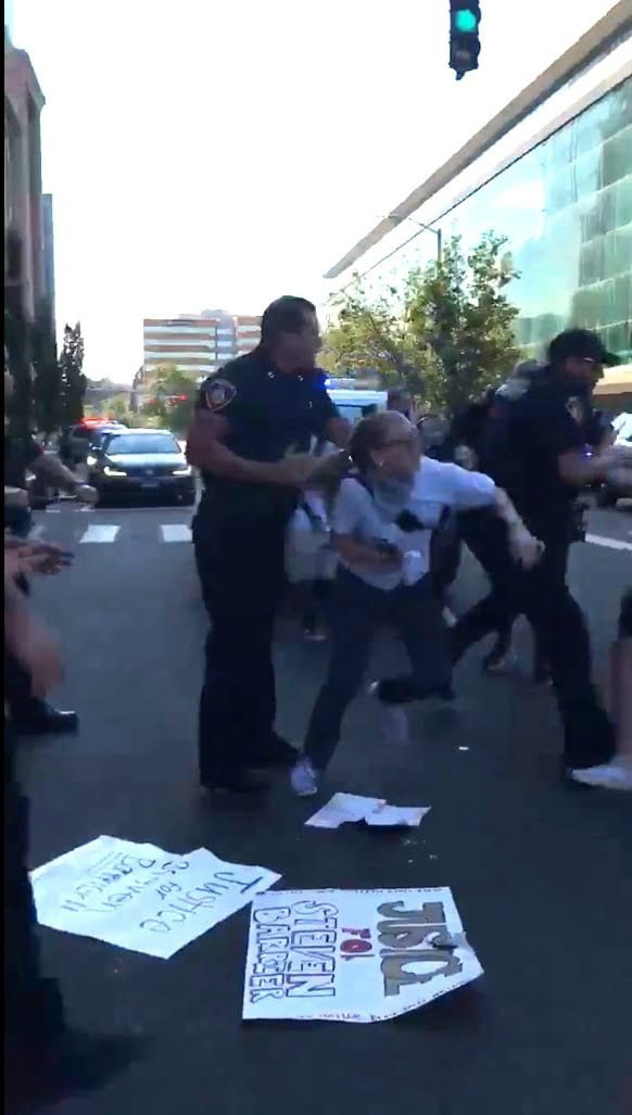 Varios videos capturaron partes de la escaramuza y parecen mostrar a los oficiales empujando y sometiendo físicamente a los manifestantes frente a la tienda Target en Broad Street.