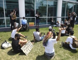 Shaw dijo que los oficiales advirtieron a los manifestantes en numerosas ocasiones que serían arrestados si no volvían a casa, y alrededor de Target en la Broad Street, los oficiales comenzaron a detener a los manifestantes.