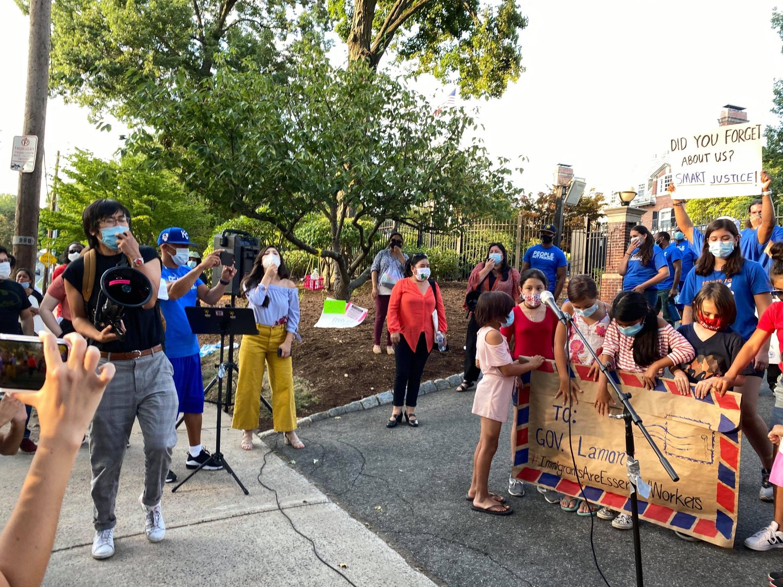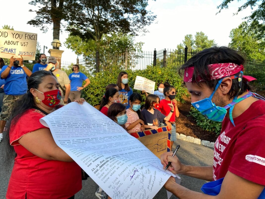 Cerca de 50 defensores de los inmigrantes se reunieron afuera de la mansión del gobernador Ned Lamont para entregar un sobre gigante, con una carta que contenía una solicitud de reunión y describía sus demandas, incluyendo un Fondo de Desastre de 150 millones de dólares para auxiliar a las familias afectadas por pandemia de COVID-19.