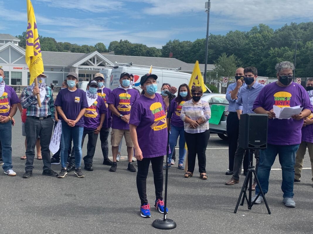 “Durante más de un año y medio, los trabajadores de las plazas de servicio de Connecticut se han estado organizando para exigir respeto en el trabajo y salarios y beneficios justos, así como un lugar de trabajo seguro durante la pandemia y el derecho a afiliarse a un sindicato”, indicó Rochelle Palache, vicepresidenta del sindicato 32BJ SEIU.