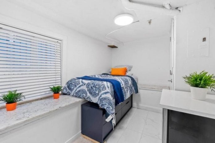 Baño con cama se alquila como “micro-estudio” por $550 al mes