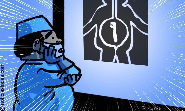 Al darse cuenta de que se había tragado su cepillo de dientes, y ya experimentando molestias, el hombre condujo de inmediato al hospital local donde los médicos le realizaron una radiografía, y lo prepararon para una operación gastroscópica de emergencia.