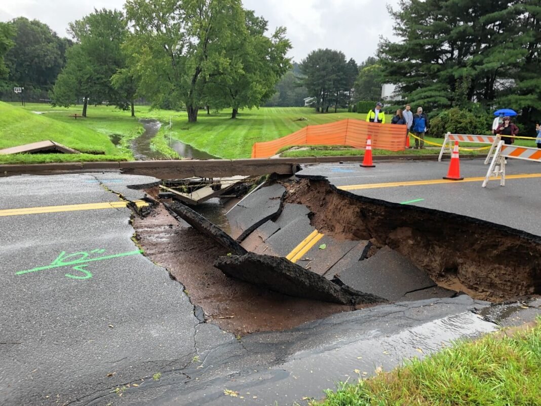 – Las fuertes lluvias causaron daños en Manchester, arrasando una carretera junto a un complejo de condominios en Ambassador Drive. No se reportaron heridos.