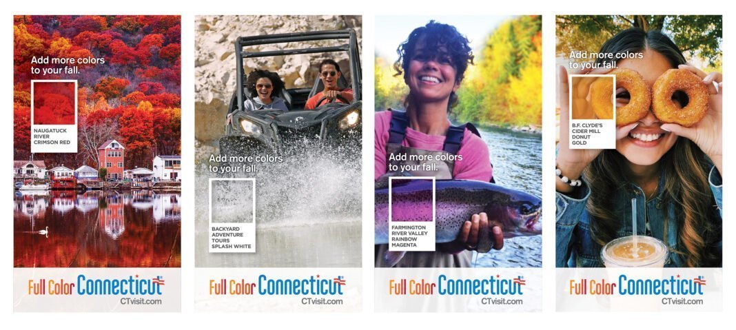 Llamada Full Color Connecticut, la campaña presenta el renombrado follaje de otoño del Estado, mientras rinde homenaje a todos los demás colores y experiencias que los residentes y visitantes de Connecticut pueden disfrutar en este otoño, desde los dorados de los laberintos de maíz y los rosas del algodón de azúcar hasta el azul de las velas de la costa y el ámbar de la cerveza artesanal.