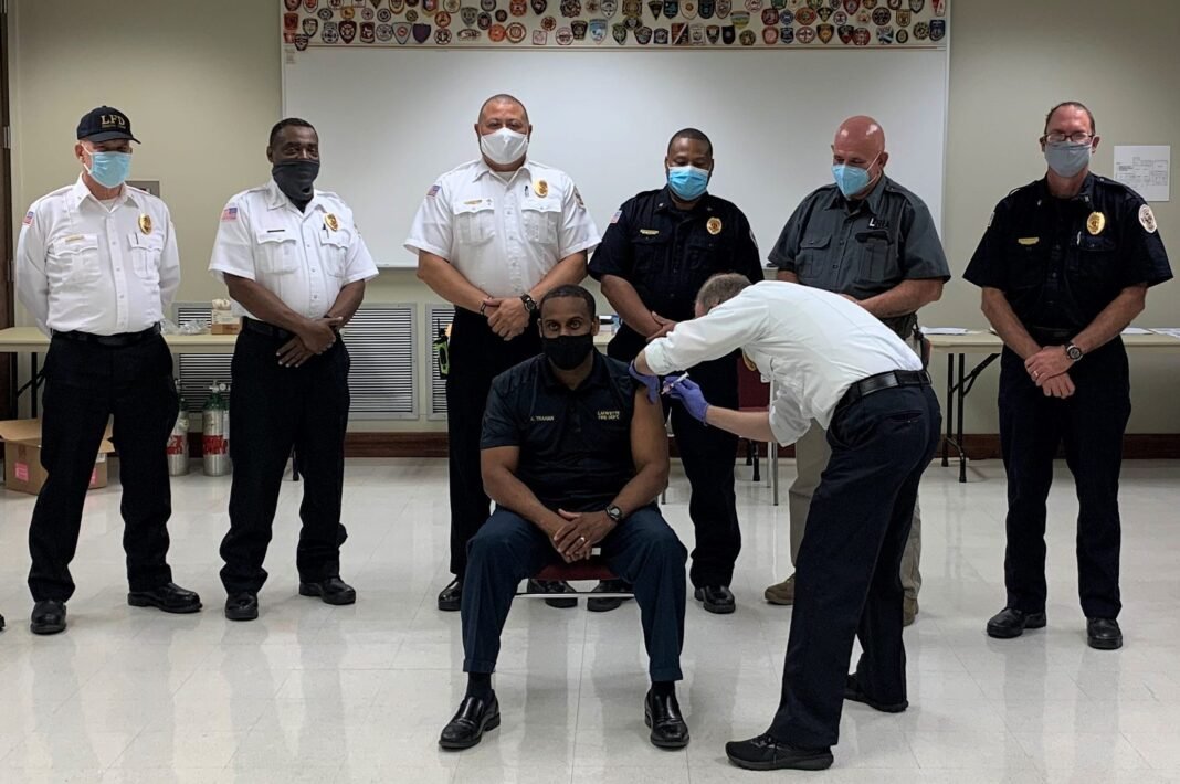 A nivel nacional, los informes indican que los agentes de la policía han tenido menos probabilidades de buscar las vacunas contra el COVID-19 que sus comunidades circundantes, aunque el personal de la aplicación de la ley fue uno de los primeros en ser elegible para una vacuna este año.