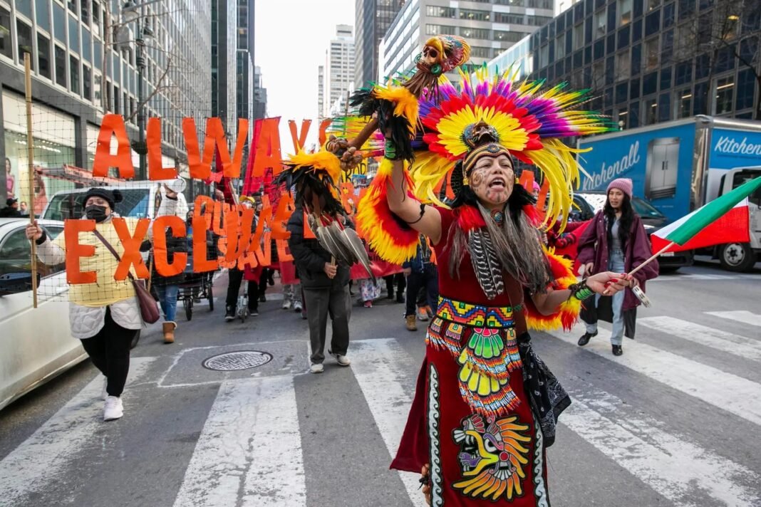 Varios inmigrantes compartieron sus historias de vida, entre ellos la mexicana Erica Juárez, trabajadora doméstica y que encabezó la marcha vestida como una danzante azteca, quien hizo un llamado a Hochul a que apoye el dinero que piden porque “no alcanzaron los fondos, no fueron suficientes”.