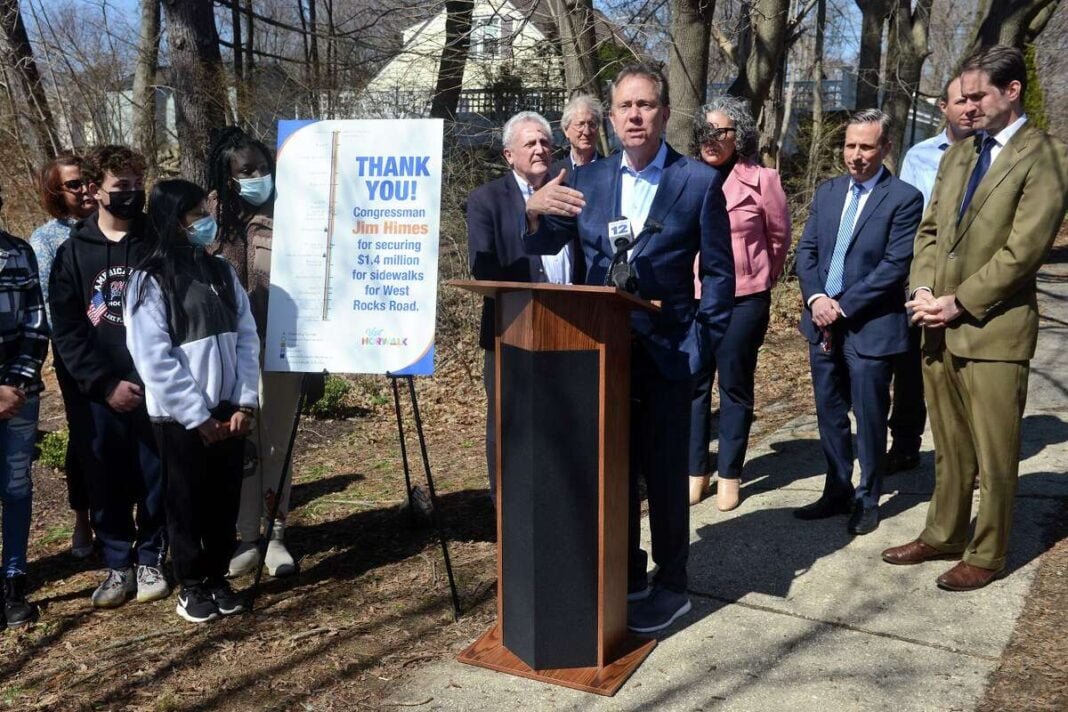 Himes estuvo acompañado por el gobernador Ned Lamont, el senador estatal Bob Duff (D-Norwalk), el alcalde Harry Rilling, la superintendente de las escuelas, Alexandra Estrella; el director de la escuela secundaria West Rocks, Adam Reynolds, y el miembro de la Comisión de Bicicletas de Norwalk, Colin Grotheer.