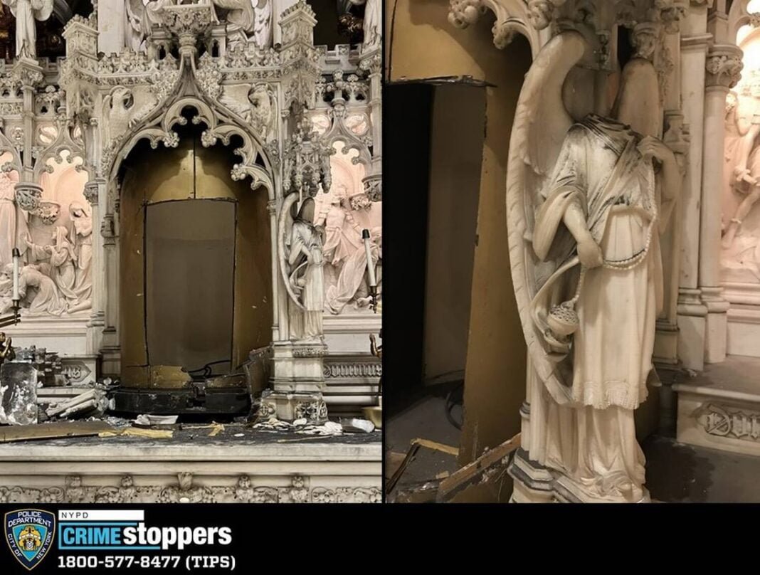 Además, decapitaron estatuas de ángeles que flanqueaban la pieza, según dijeron responsables de la iglesia de San Agustín, situada en el barrio de Park Slope, en Brooklyn.