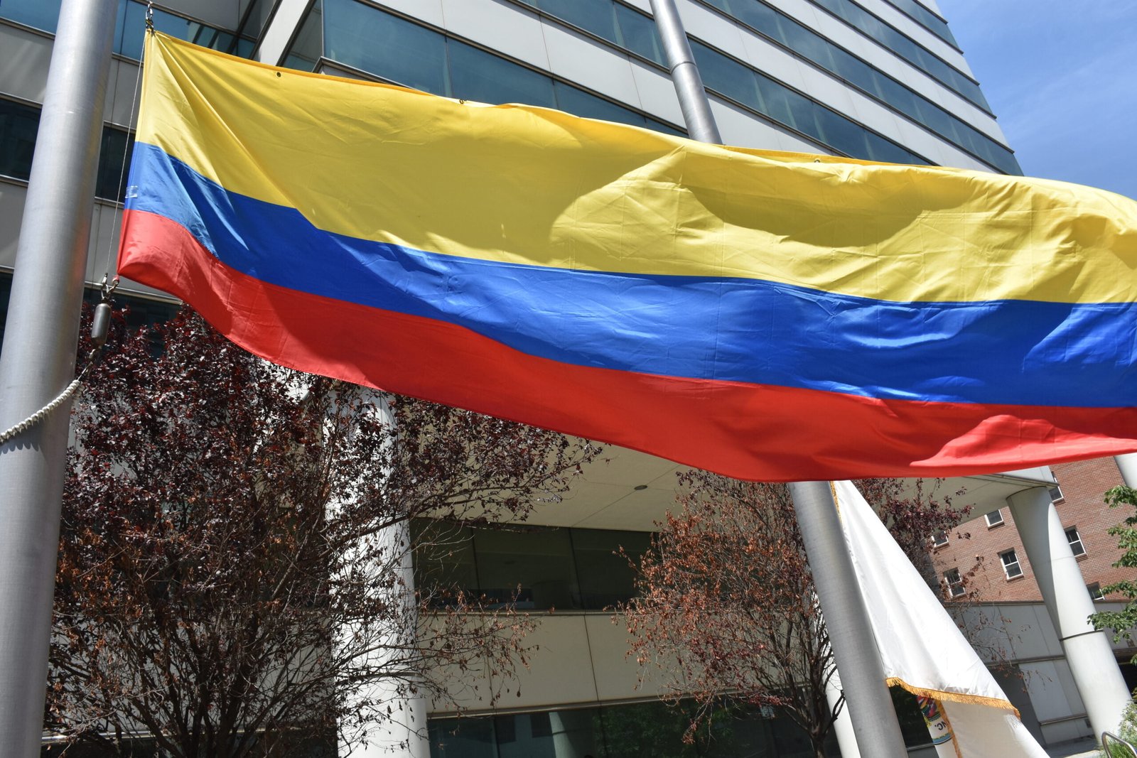 La bandera de Colombia flamea en el Centro de Gobierno de Stamford. (Foto: EL SOL News).