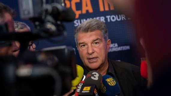 BARCELONA — Joan Laporta se soltó en Nueva York y en una breve conversación con los medios de comunicación, al finalizar la presentación del acuerdo del Barcelona con ACNUR en el Rockefeller Center, lanzó mensajes para todos los gustos.