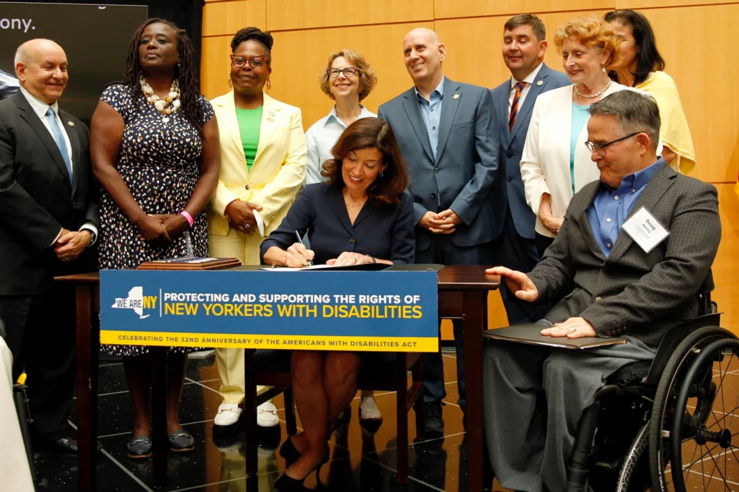 Las medidas fueron promulgadas por Hochul en una ceremonia en el 32.° aniversario de la aprobación de la Amercians with Disabilities Act (ADA).
