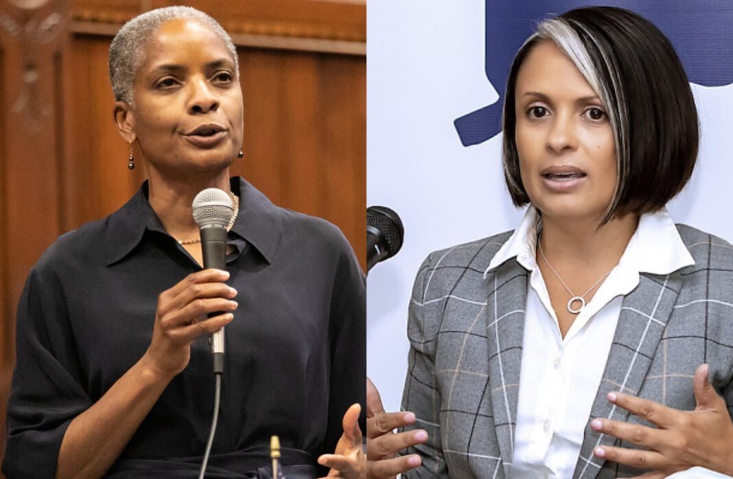 Maritza Bond y Stephanie Thomas se postulan en las primarias demócratas para la Secretaría de Estado de Connecticut el 9 de agosto de 2022.