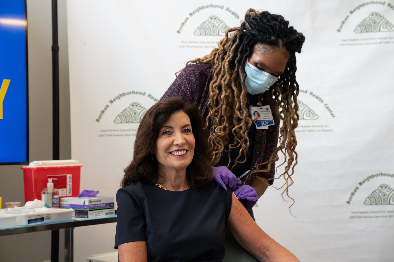 Hochul hizo el anuncio poco antes de recibir esta semana su vacuna de refuerzo en el Boriken Neighborhood Health Center en East Harlem.