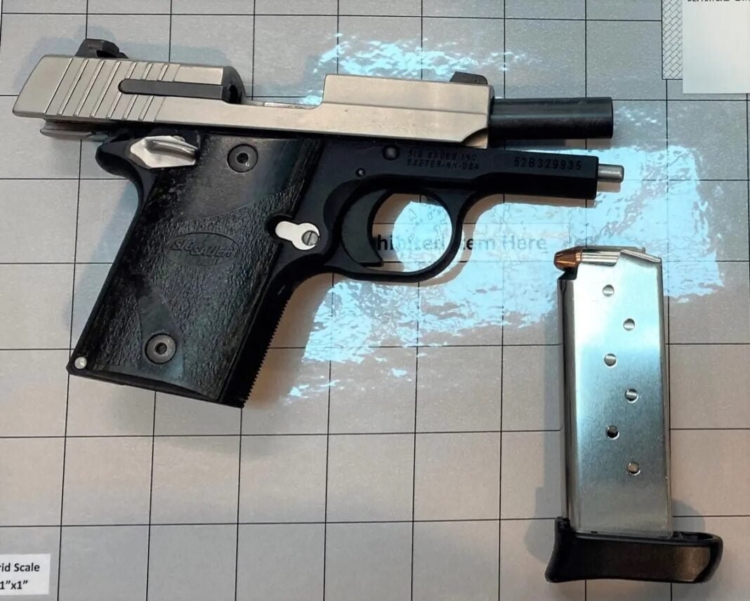 La pistola de 9 milímetros estaba cargada con siete balas, incluida una en la recámara, dijo la agencia de Seguridad Nacional.