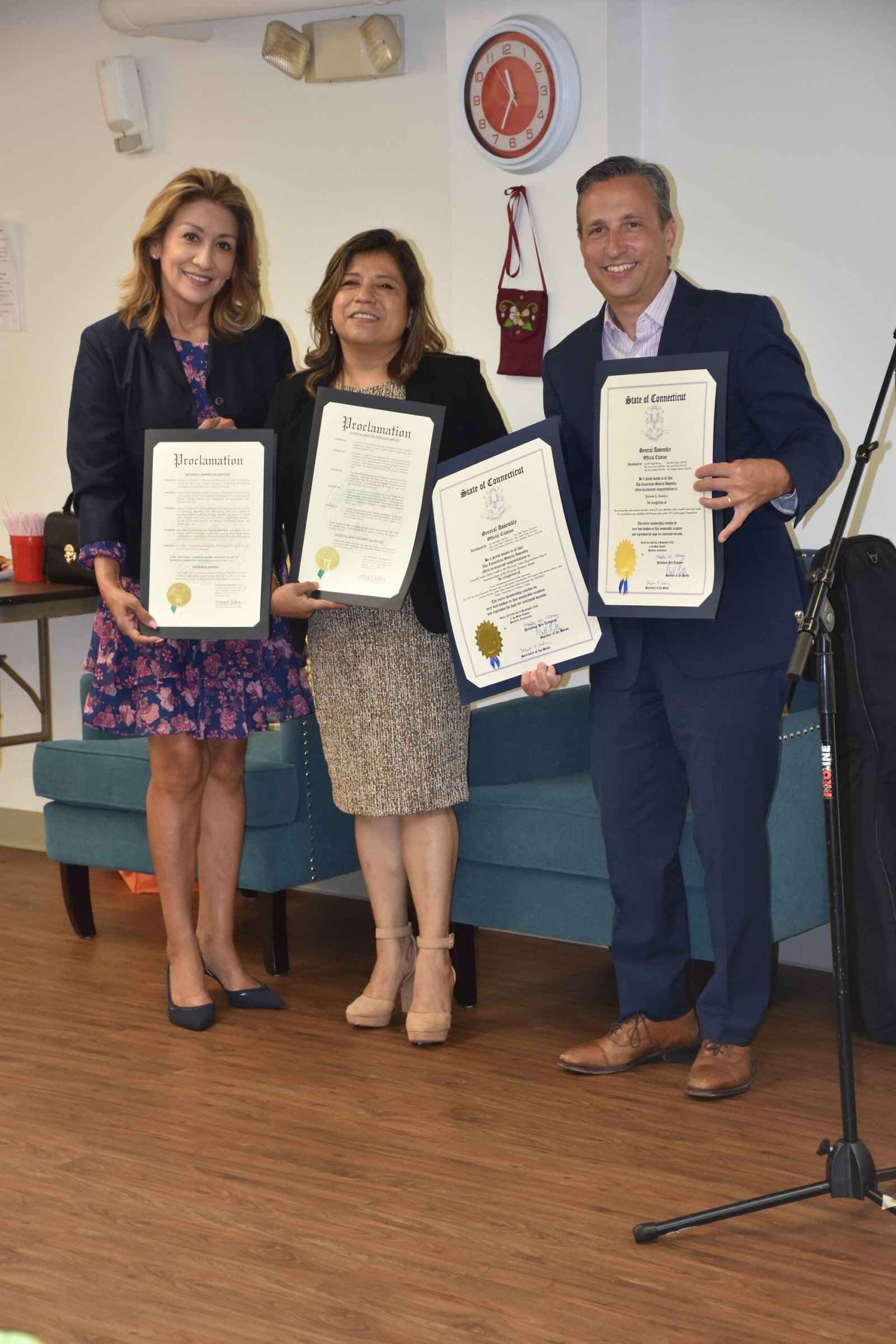 El alcalde Harry Rilling, a través de su esposa, y la Asamblea General de Connecticut, a través del Senador estatal, Bob Duff (D-Norwalk) le otorgaron una proclama y una citación, respectivamente, al Norwalk Senior Center South y a Giovana Ramírez, por su trabajo en el bienestar de los adultos mayores de Norwalk.