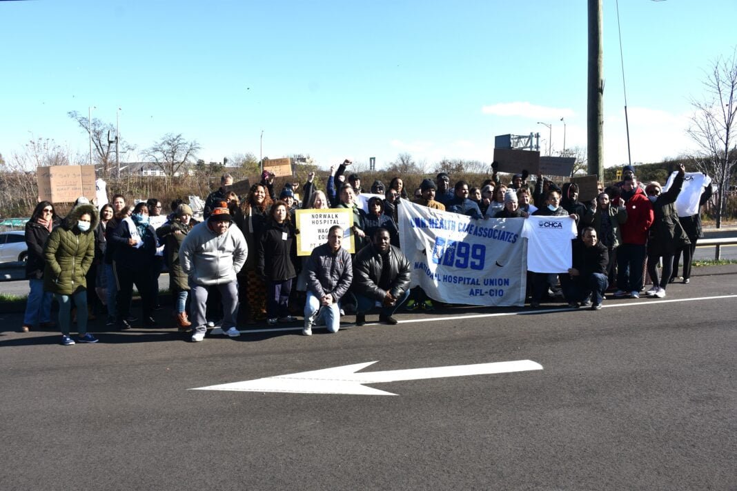A la protesta asistieron más de 100 empleados del Hospital de Norwalk portando pancartas y gritando “queremos un aumento justo, lo necesitamos ahora”.
