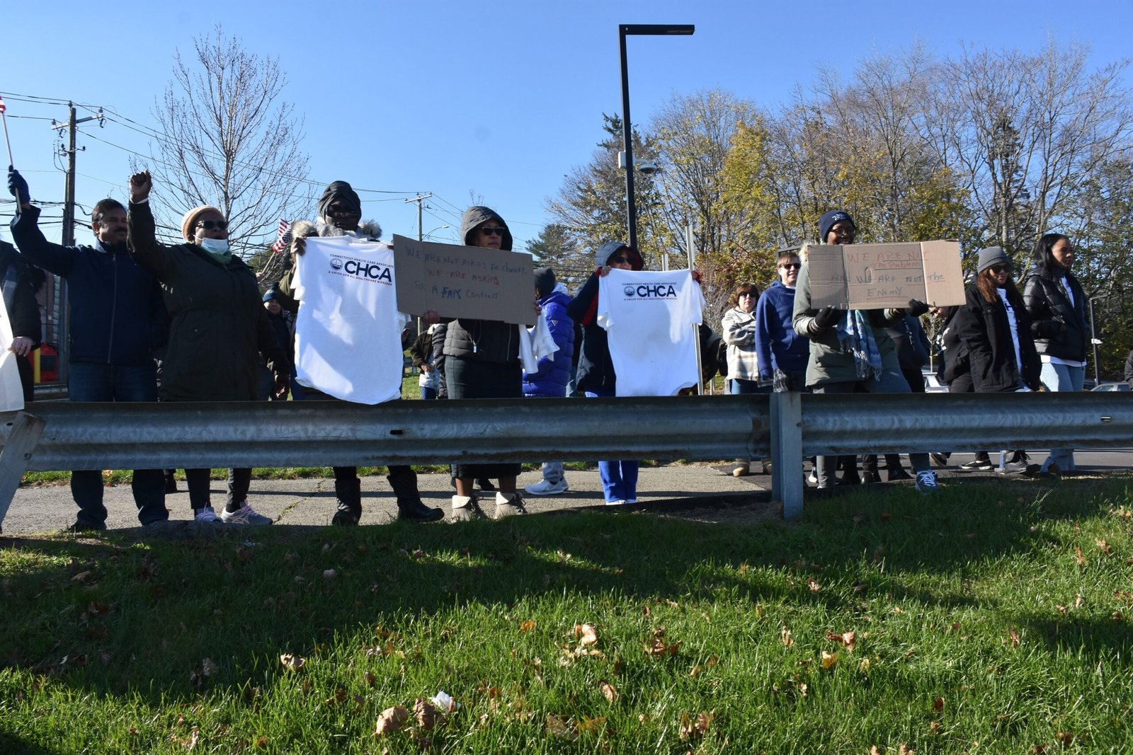 NORWALK.- El sindicato Connecticut Health Care Associates 1213 (CHCA) del Hospital de Norwalk llevó a cabo una protesta, el sábado pasado, en el área de estacionamiento de la Jefferson Elementary School, para pedir un contrato más justo y mejores condiciones para todos los empleados del hospital.