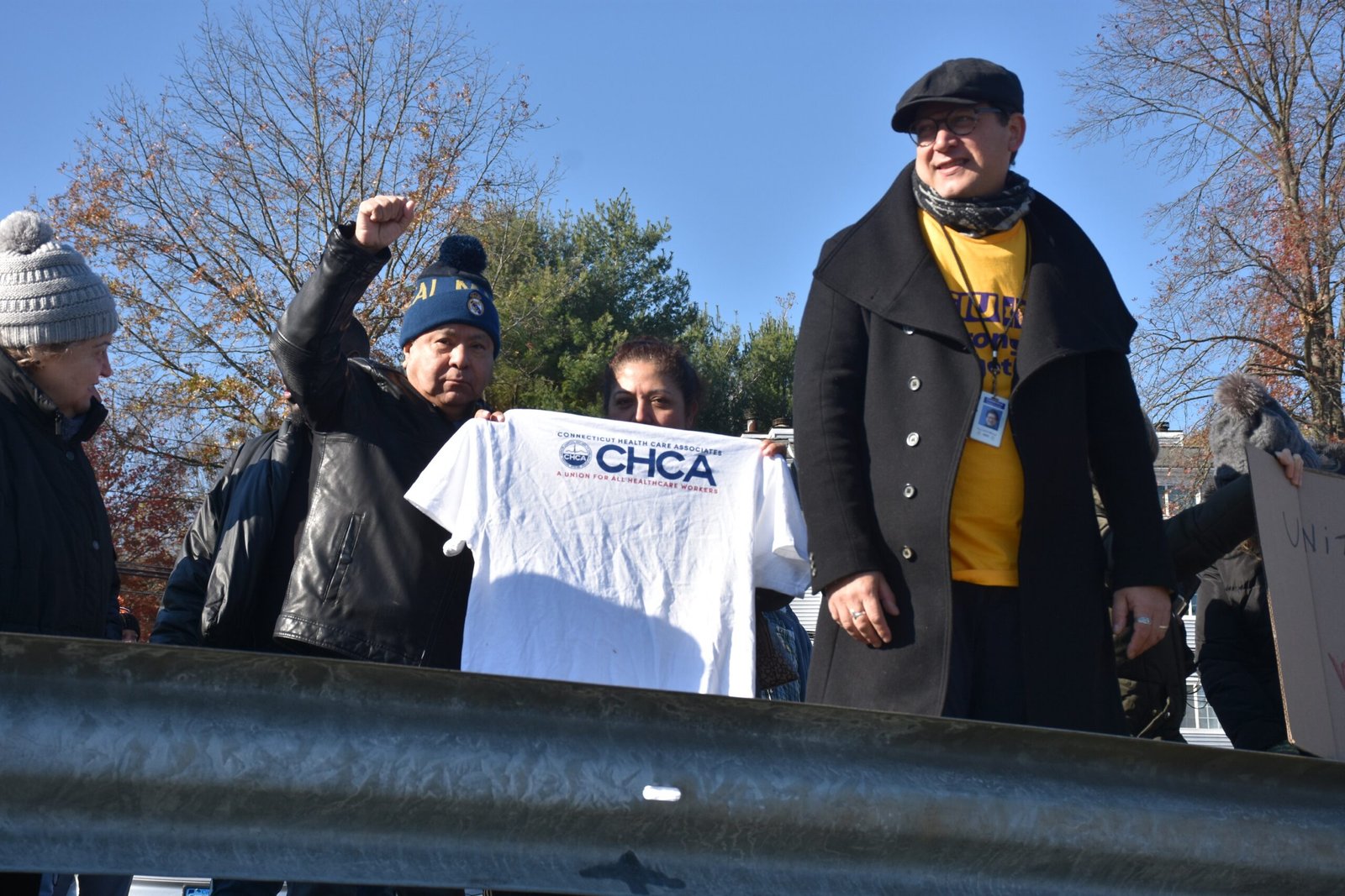 A la protesta asistieron varios funcionarios, entre ellos, el Senador estatal Bob Duff (D-Norwalk) para apoyar a los trabajadores.