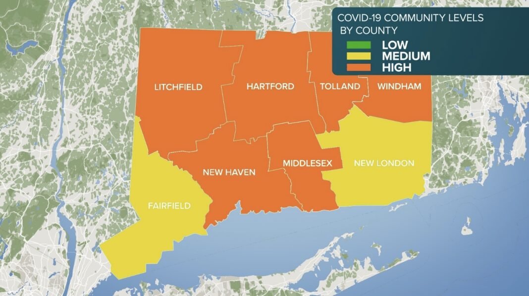NEW HAVEN.- Un total de seis condados de Connecticut tienen altos niveles de COVID-19 en la comunidad, según los Centros para el Control y Prevención de las Enfermedades (CDC).
