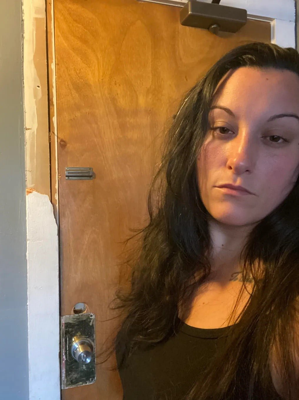 La madre dijo que los oficiales de la Unidad de Víctimas Especiales derribaron su puerta sin previo aviso a las 6:00 de la mañana del 6 de abril pasado, causando daños en la cerradura, la perilla y todo el marco de la puerta.