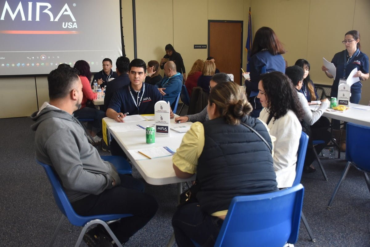 Los miembros de MIRA USA ayudaron a los asistentes a comprender el formulario N-400, repasaron las 100 preguntas cívicas (con unas flash cards) e hicieron un simulacro de la entrevista, con el fin de que pierdan el miedo a la hora de enfrentarse a la entrevista real.