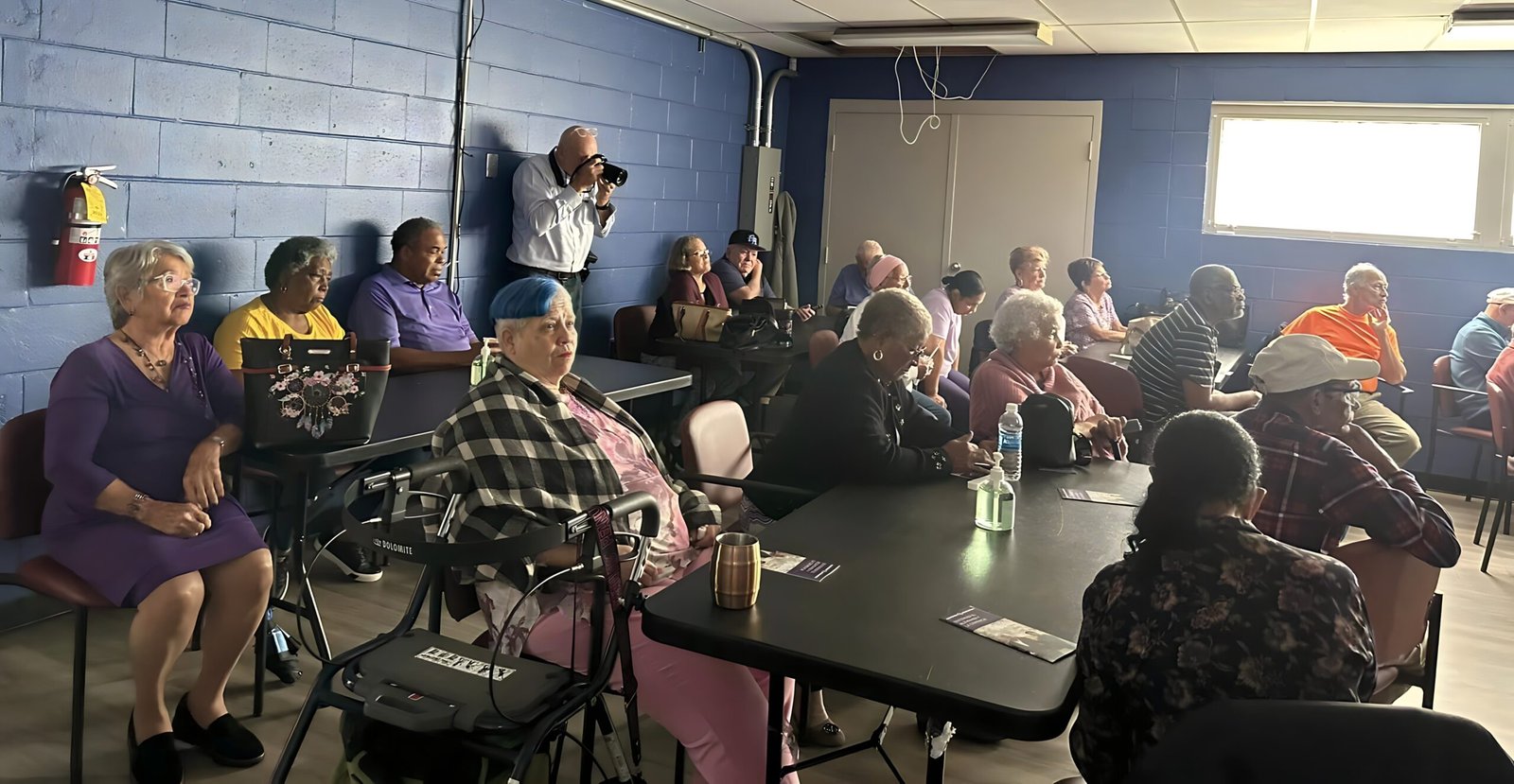 El grupo de ancianos prestó mucha atención a Canales mientras ella hablaba de las señales de alerta de la enfermedad de Alzheimer.