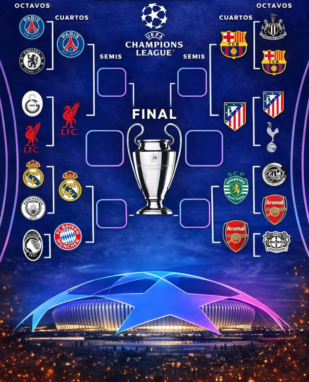 MADRID.- Los cuartos de final de la UEFA Champions League 2026 ya están definidos y prometen una de las ediciones más intensas de los últimos años. Ocho gigantes europeos avanzaron tras superar un exigente camino en los octavos de final, dejando eliminaciones sorprendentes y goleadas históricas.