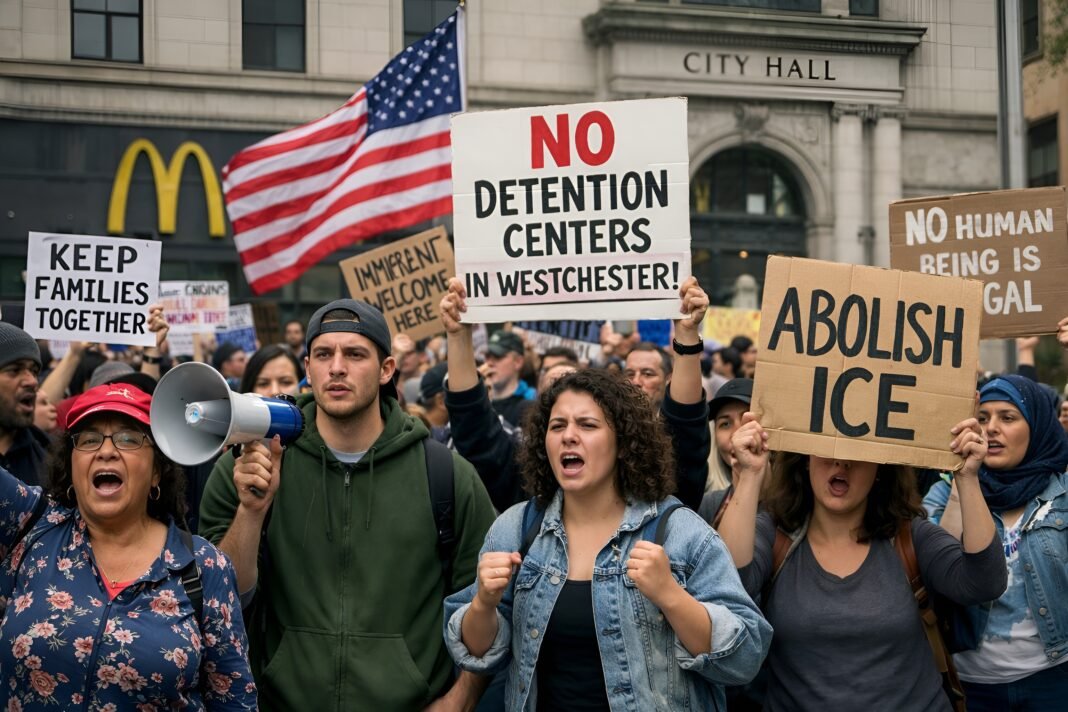 YONKERS.- Decenas de manifestantes se reunieron en el centro de Yonkers para expresar su oposición a la posible construcción de centros de detención del U.S. Immigration and Customs Enforcement (ICE) en la región del Valle de Hudson.